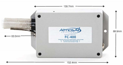 The SGFC-400 bipolar ionization system is designed for mounting in the supply discharge side of smaller air handling units such as a fan coil or heat pump. The SGFC-400 is capable of producing a range of 350 – 1,500 negative ions/cm3