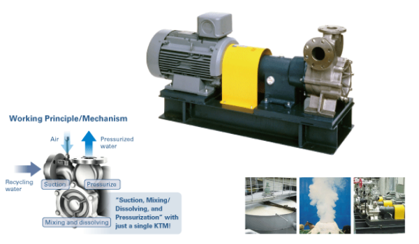 - The KTM simultaneously draws in air and water,dissolves air with its turbine impeller,
