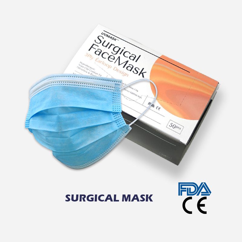 50 masks / box Filtration Efficiency: BFE ≥ 99% DP <49Pa/cm2 MC ≤1cfu/g Color : Blue Material:Non-woven FDA Approved CE Approved Delivery from Singapore Box dimension 85mm(H)x200mm(L)X105mm(W) MEDICAL GRADE UVMASK™️ Surgical Face Mask helps prevent dust, bacteria and dangerous diseases through inhalation effectively. Model: Surgical Facemask 3 Ply Classification: 3...