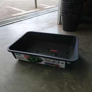 BABA Yasa-I Super Vege Tray is a planting tray specially designed for growing vegetables. It is more space efficient than planter boxes of the same length, allowing to grow up to 50% more vegetables with the additional width. It also saves soil as it is shallower than a planter box, while staying at the ideal height for vegetable roots. It also has multiple raised holes at the bottom retaining a sufficient amount of water for the vegetables while draining any excessive water. It is durable and reusable, and is easy to clean out after harvesting.