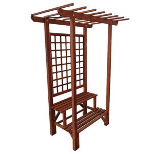 It has 2 steps for you to display your orchids or other plants and a square trellis backing for your climber/creeper plants or wall pants (planted in fern bark or wall pots). It also has a flat wooden frame roof that you can hang your hanging pots off, grow climber/creeper plants or even attach plastic boards to provide shelter from the elements.
