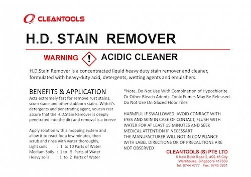Industrial strength Acidic cleaner. Extremely fast acting for removing rust stains, scum and stubborn stains. Use with extra care and supervision