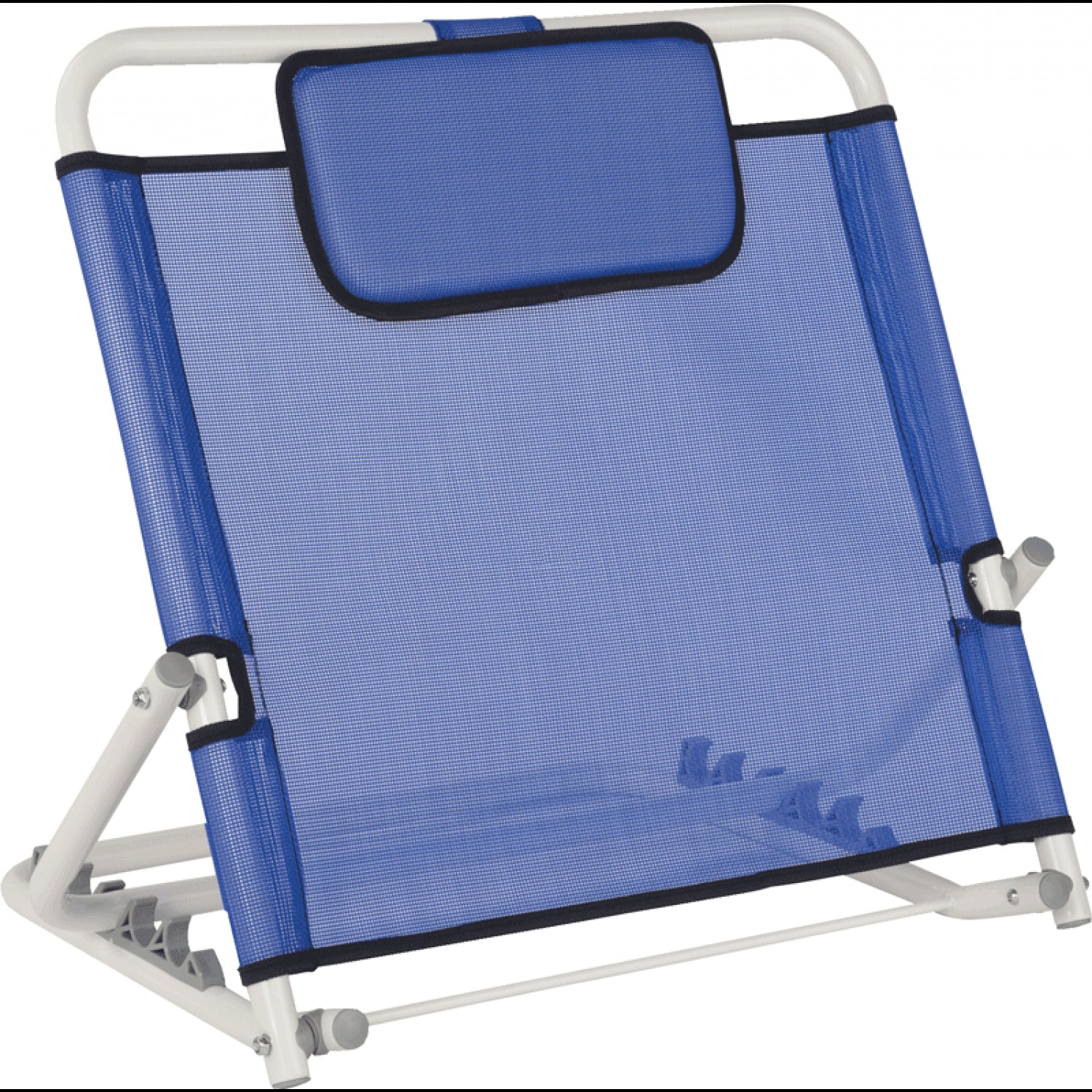 A adjustable bed backrest to assist patients to sit up in bed. Allows for different angle adjustments. Main body is made from breathable mesh material so as to provide for better ventilation and a padded headrest provides added user comfort.