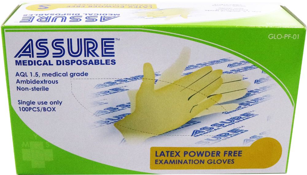 Examination Gloves (Assure), Latex, Powder-Free, Non-Sterile, Xtra Small, GLO-PF-00, 100 Pc/Box, Per Box