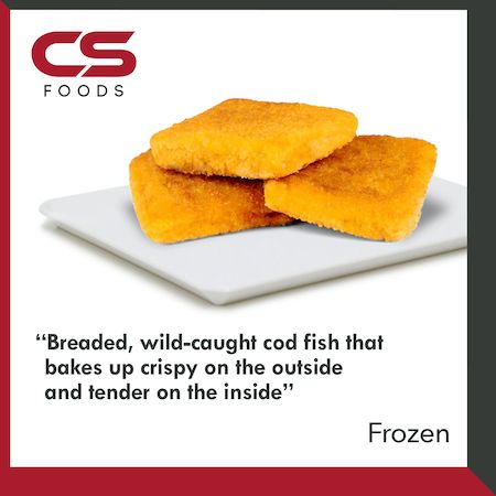 Breaded, wild-caught cod fish that bakes up crispy on the outside and tender on the inside. Tasty and juicy. Halal certified.