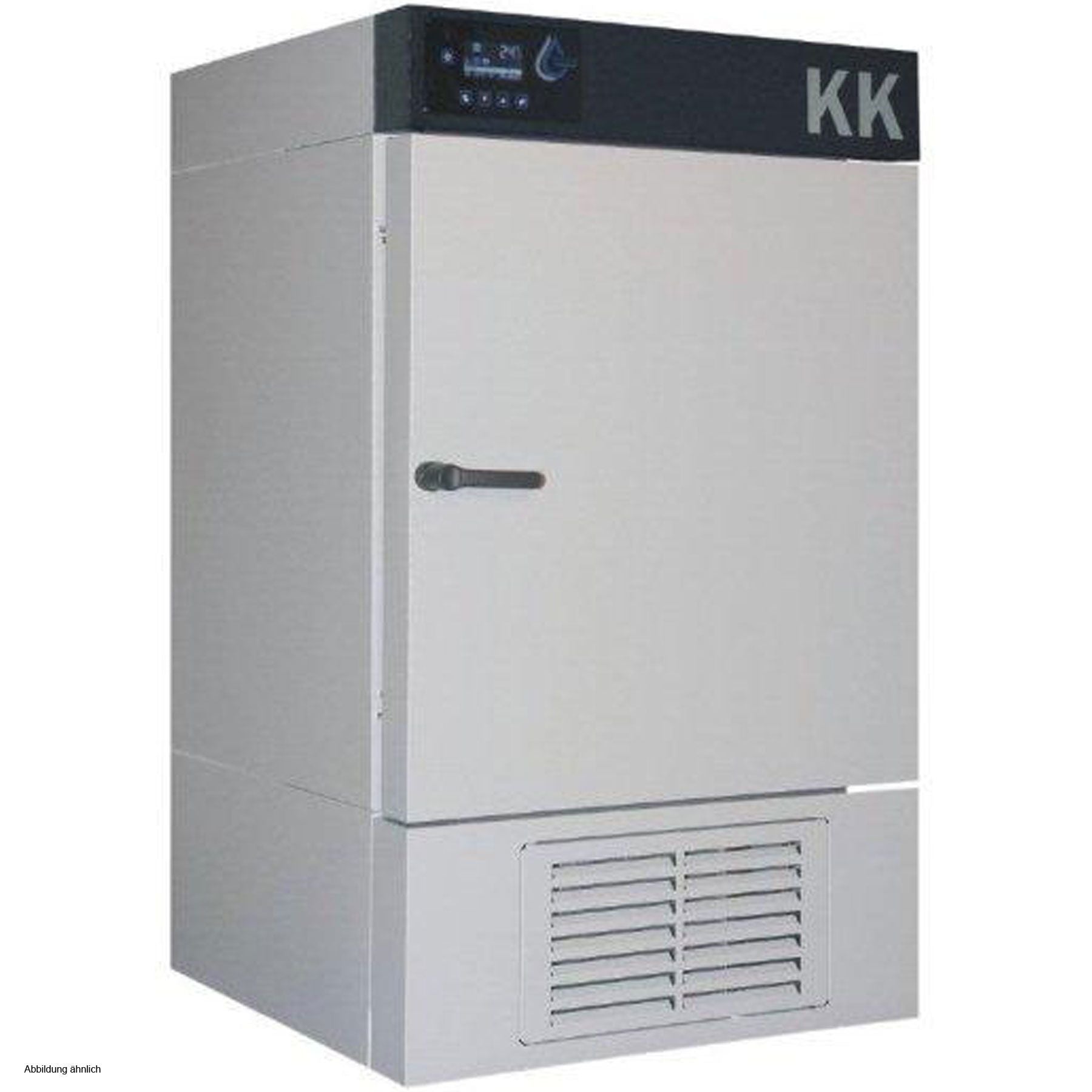 professional version climatic chamber with steam humidifier, forced air convection, powder coated sheet housing (grey colour with graphite front panel), stainless steel interior, double door: internal glass and external solid, temperature range from -10°C to +100°C (pressure 1 to 8 bar), humidity range: 10-90% r.h. (according to the diagram given in the catalog), humidity resolution every: 1%, full colour touch screen, test results memory, USB port, Ethernet interface (Ethernet cable included), multi-segment temperature-time-humidity profile (up to 100), 2 stainless steel wire shelves, access port, open door alarm, door lock, open door counter, equipped with a container for waste water (KK/K), requires water supply with conductivity: 125 to 1250 uS/cm (microsiemens/cm) – tap water should be equivalent to such parameters; water pressure: 1 - 6 bar