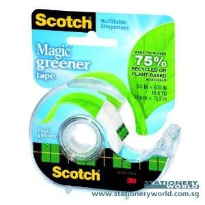 3/4" X 600"Eco-friendly Scotch Magic Tape is made from more than 75 percent renewable, plant-based materials. Photo-safe tape disappears on paper and won't show on copies. Pull off the roll smoothly and cut easily. Easy-to-handle tape resists splitting and tearing. Tape also resists yellowing and drying out. You can write...